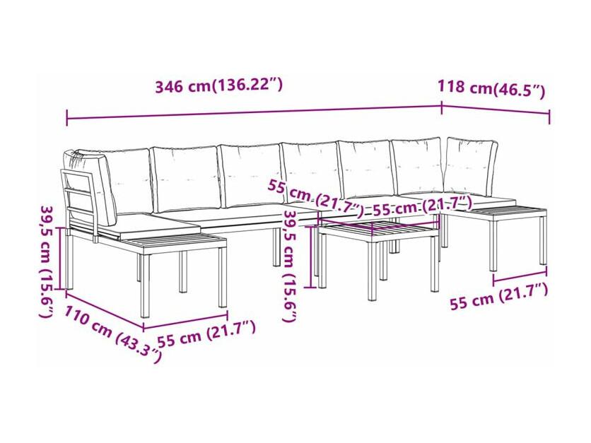 Salon de jardin avec coussins 5 pcs noir acier enduit de poudre