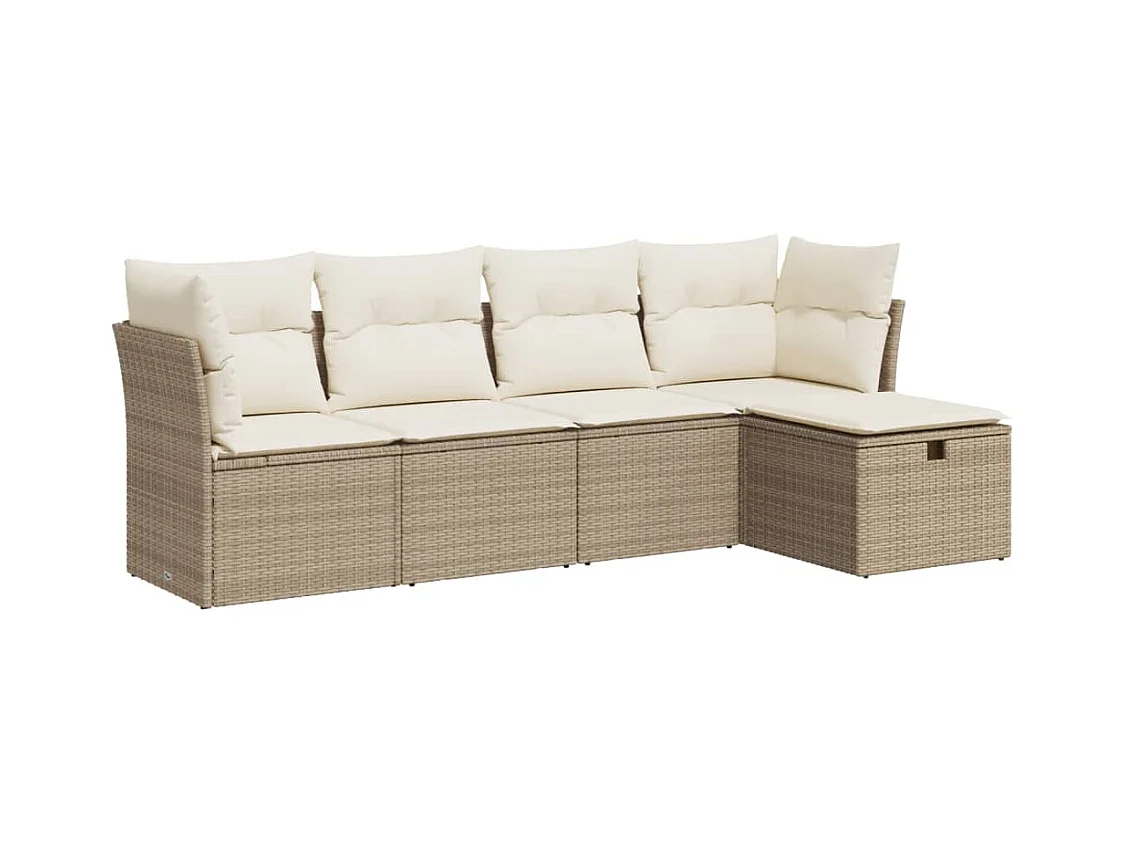 Salon de jardin avec coussins 5 pièces beige résine tressée