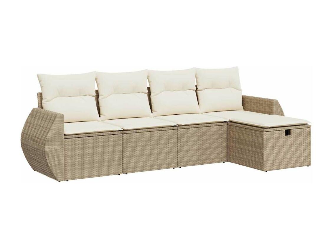 Salon de jardin avec coussins 5 pièces beige résine tressée