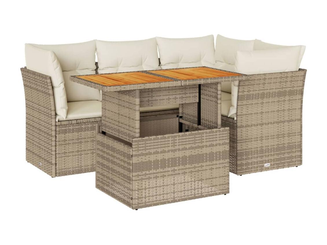 Salon de jardin avec coussins 5 pièces beige résine tressée