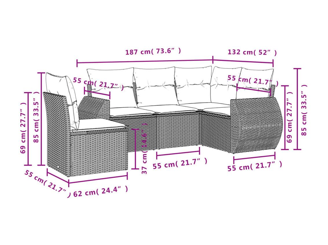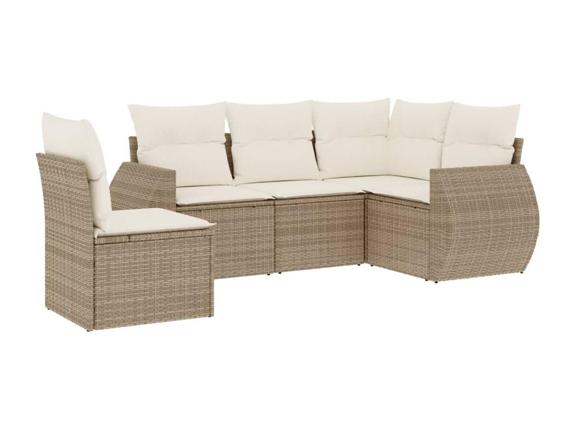 Salon de jardin avec coussins 5 pièces beige résine tressée