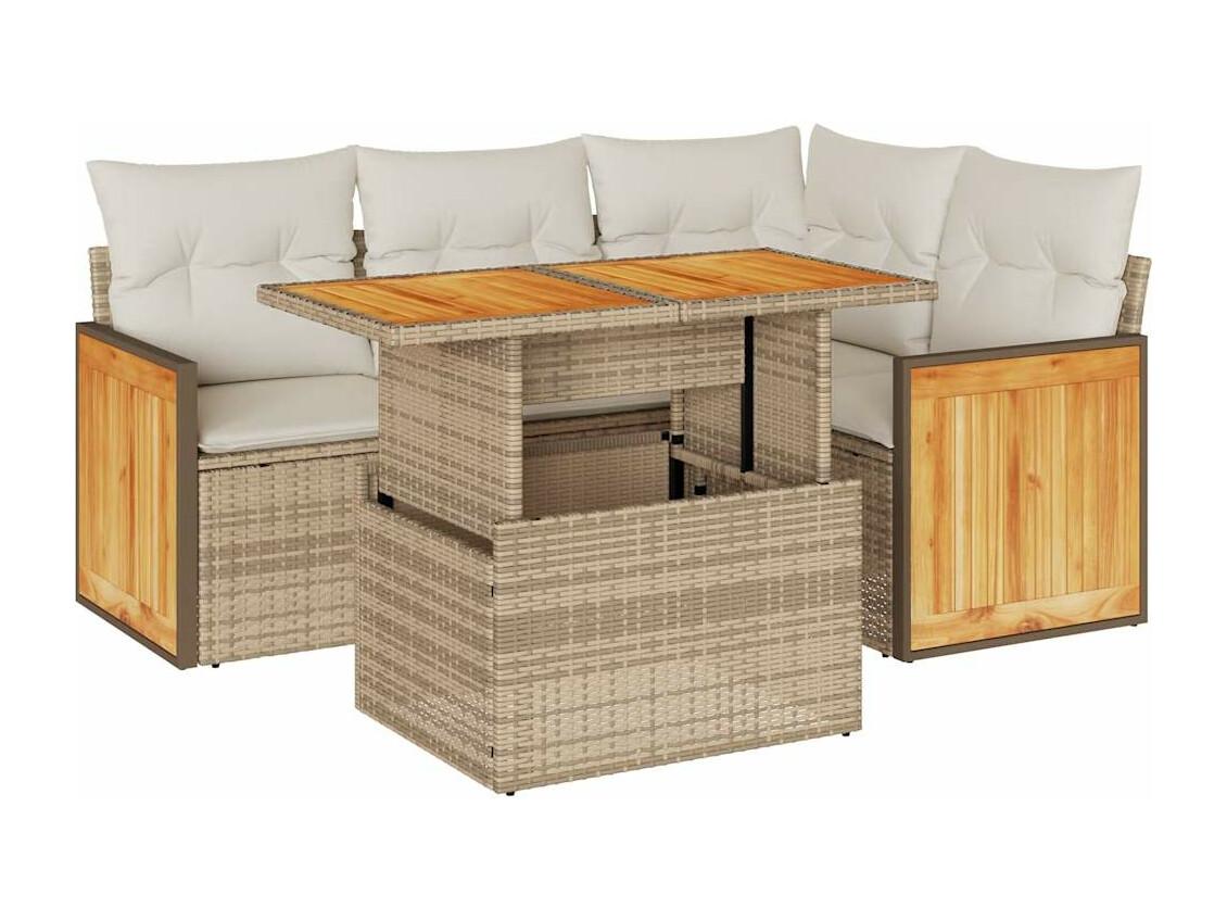Salon de jardin avec coussins 5 pièces beige résine tressée acacia