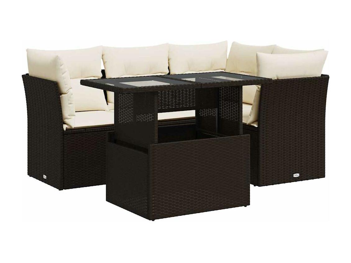 Salon de jardin avec coussins 5 pièces marron résine tressée