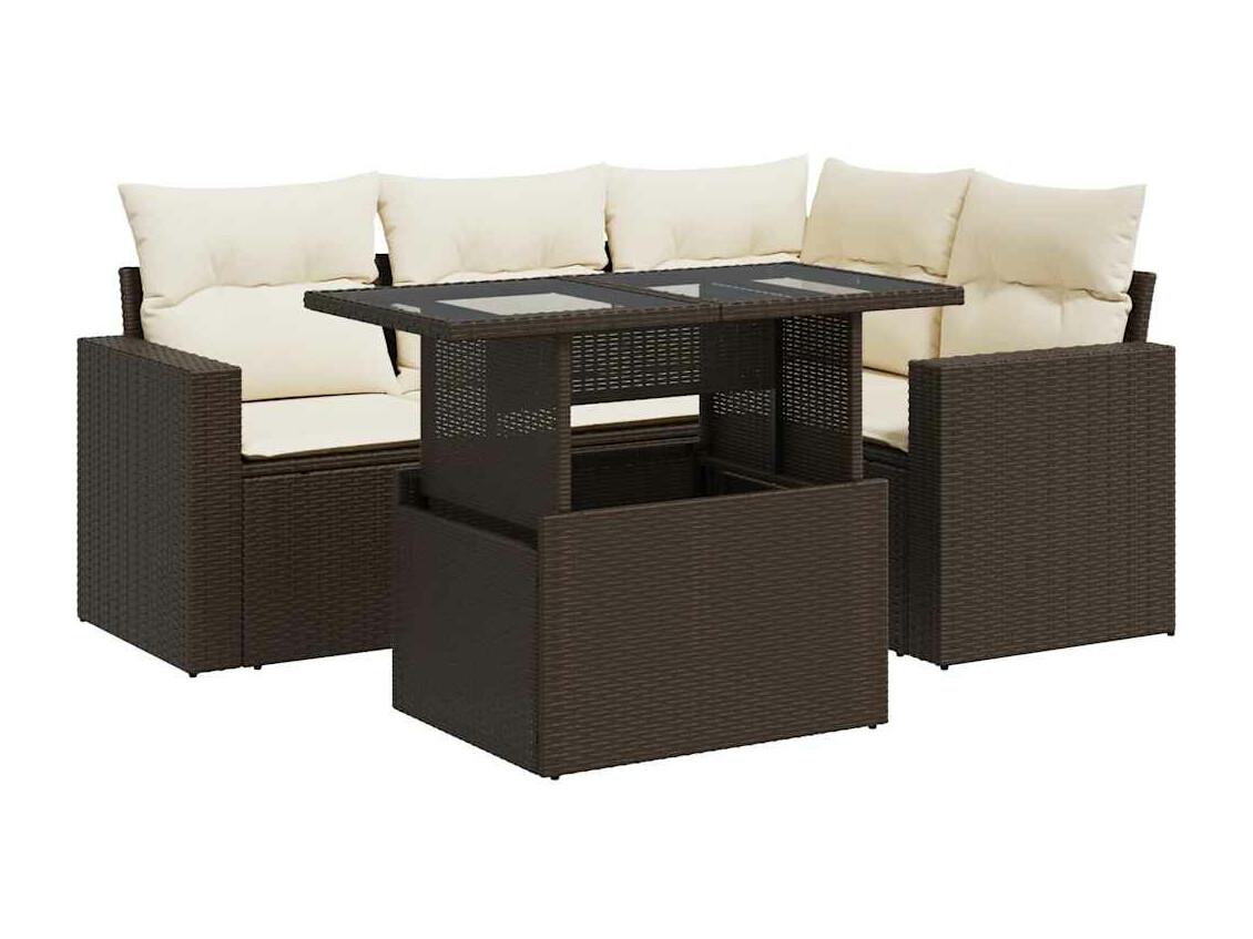 Salon de jardin avec coussins 5 pièces marron résine tressée