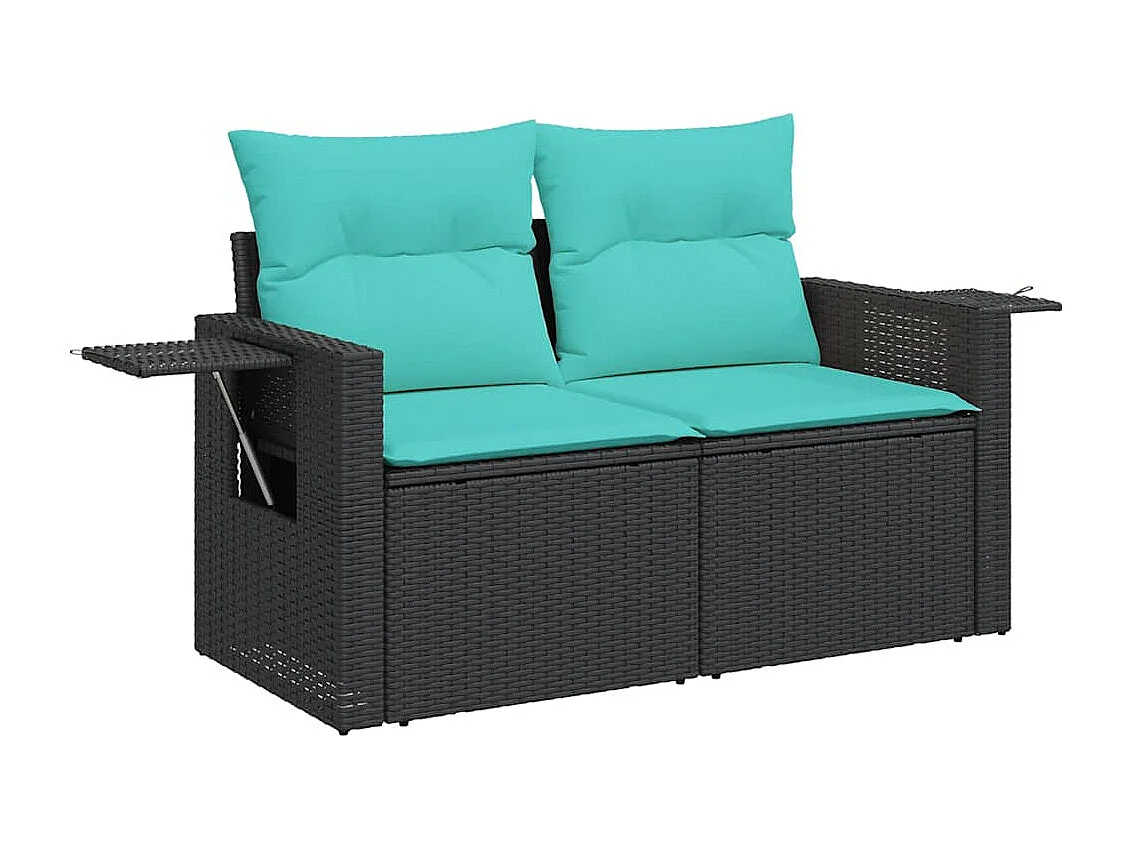 Salon de jardin avec coussins 5 pièces noir résine tressée acacia
