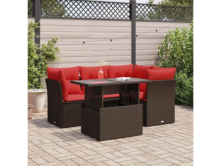 Salon de jardin avec coussins 5pcs marron résine tressée acacia