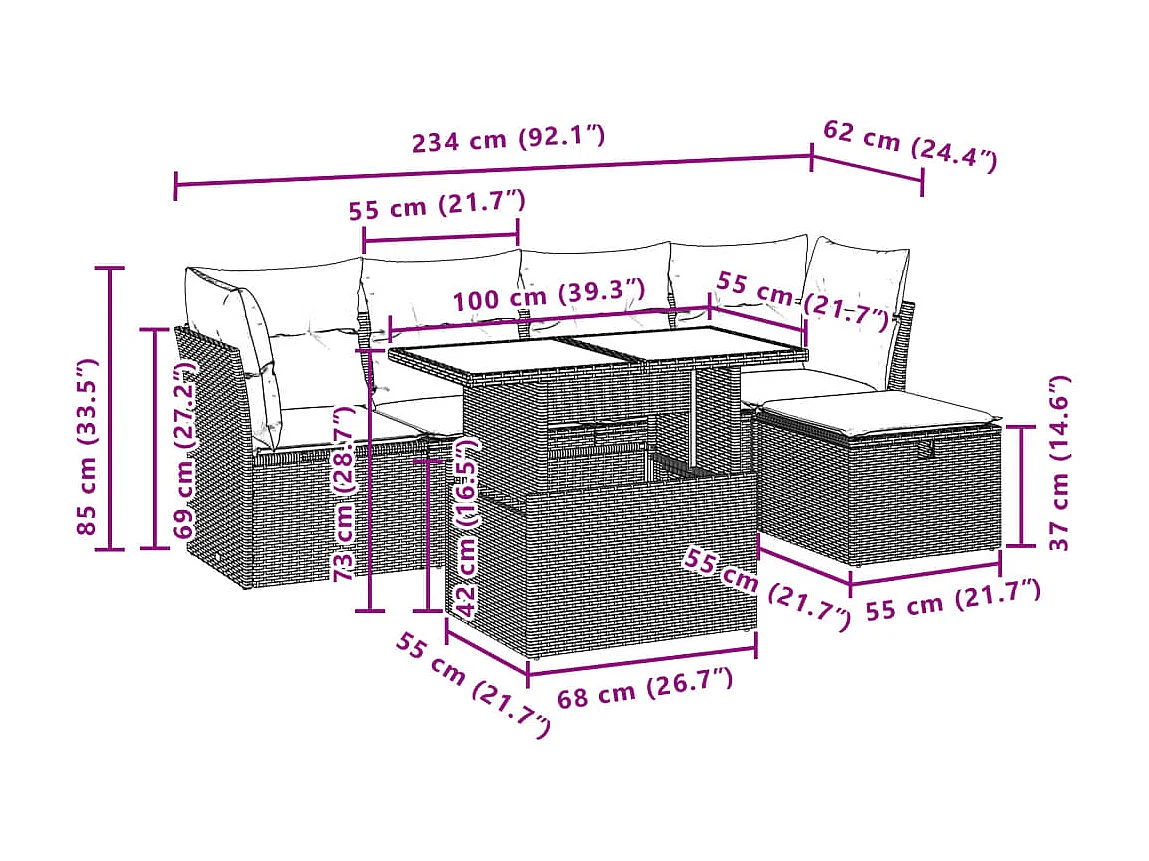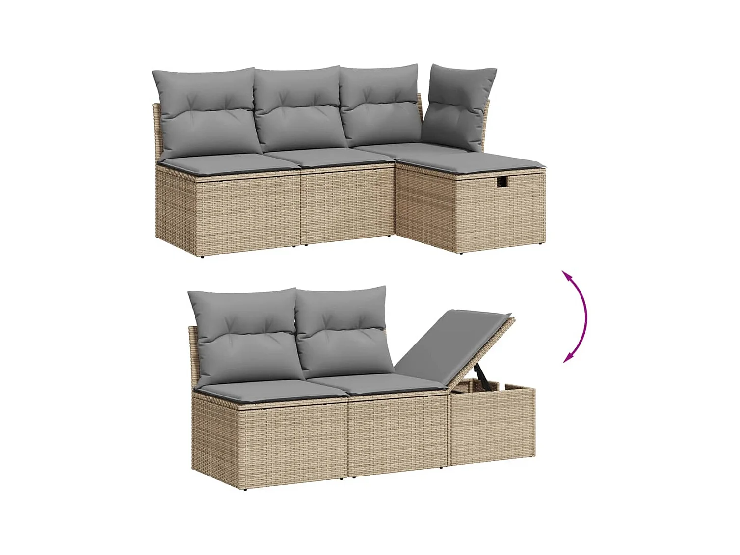 Salon de jardin avec coussins 6 pcs beige résine tressée