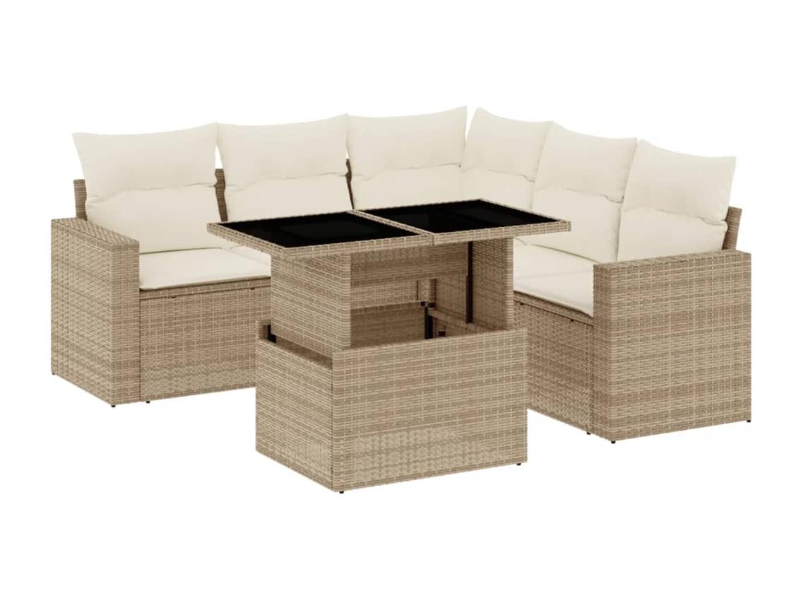 Salon de jardin avec coussins 6 pcs beige résine tressée