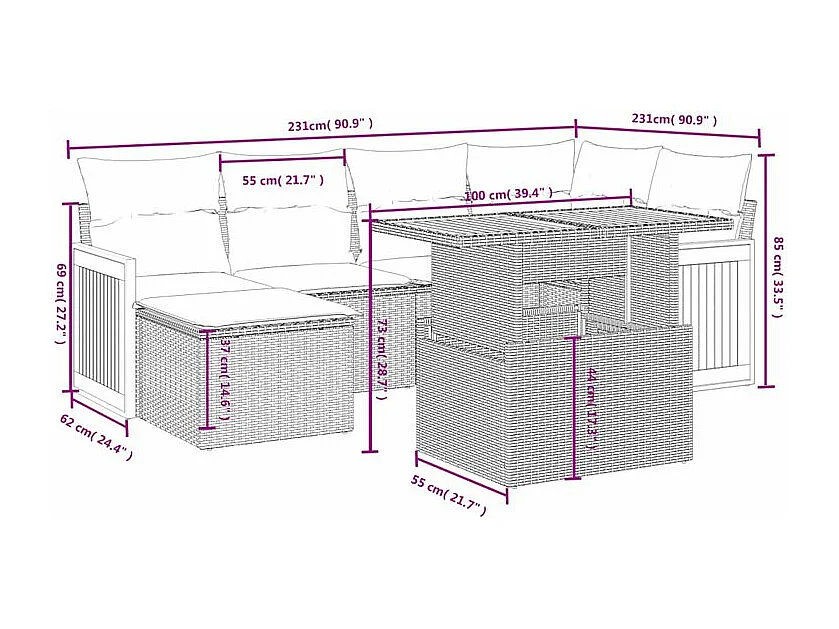 Salon de jardin avec coussins 6 pcs beige résine tressée