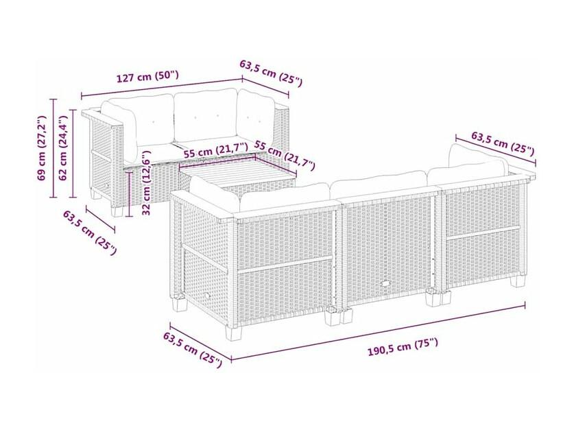 Salon de jardin avec coussins 6 pcs beige résine tressée