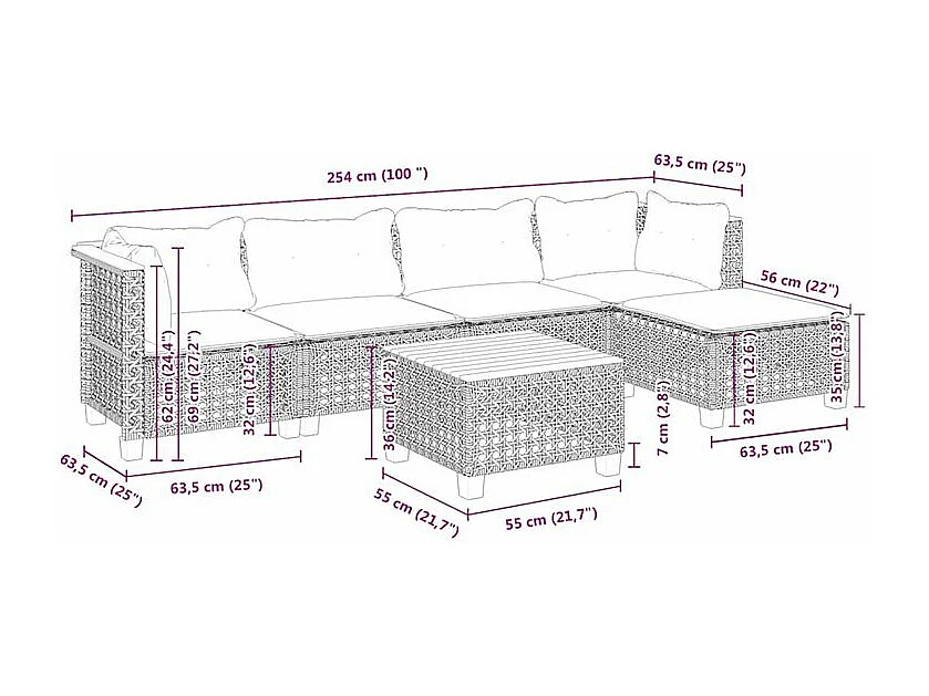 Salon de jardin avec coussins 6 pcs beige résine tressée