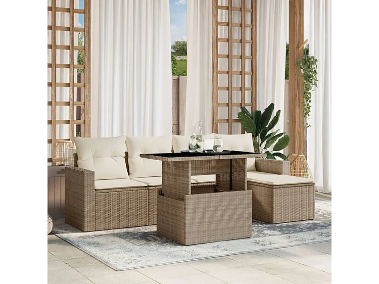 Salon de jardin avec coussins 6 pcs beige résine tressée