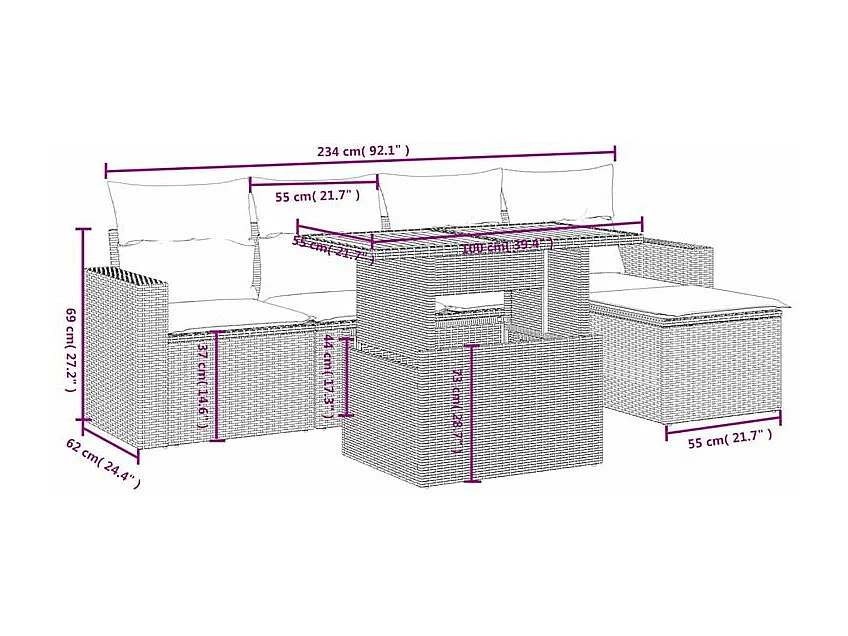 Salon de jardin avec coussins 6 pcs beige résine tressée
