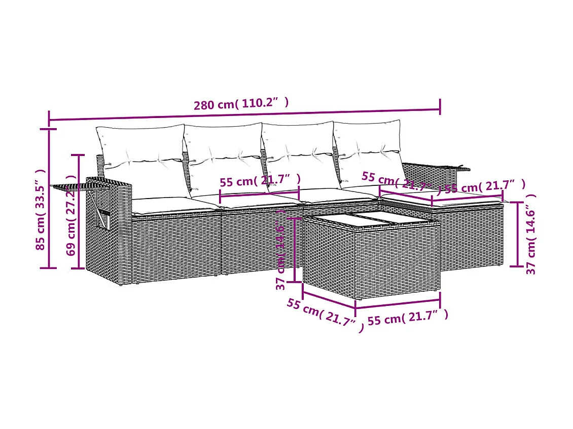 Salon de jardin avec coussins 6 pcs beige résine tressée