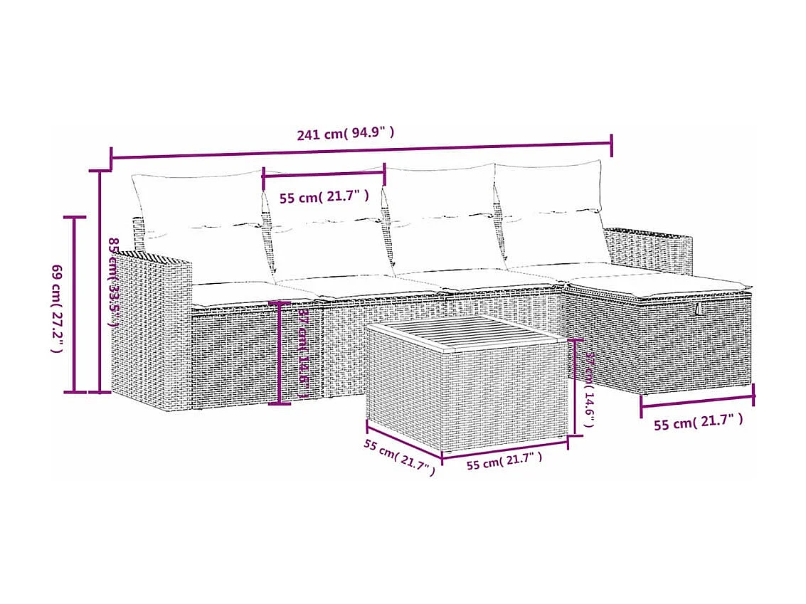 Salon de jardin avec coussins 6 pcs beige résine tressée