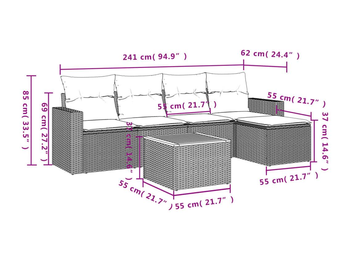 Salon de jardin avec coussins 6 pcs beige résine tressée