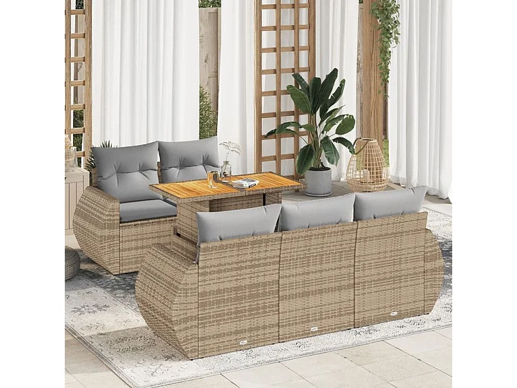 Salon de jardin avec coussins 6 pcs beige résine tressée