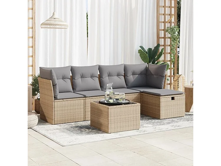 Salon de jardin avec coussins 6 pcs beige résine tressée