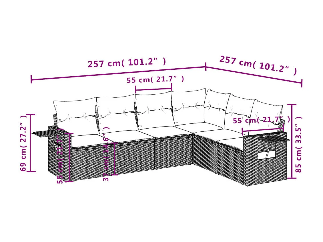 Salon de jardin avec coussins 6 pcs beige résine tressée