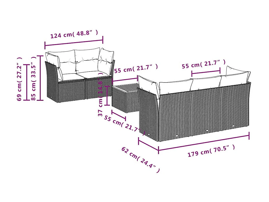 Salon de jardin avec coussins 6 pcs beige résine tressée