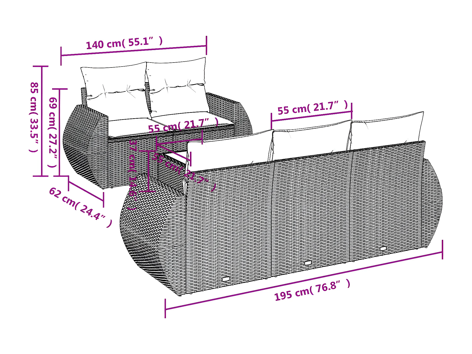Salon de jardin avec coussins 6 pcs beige résine tressée