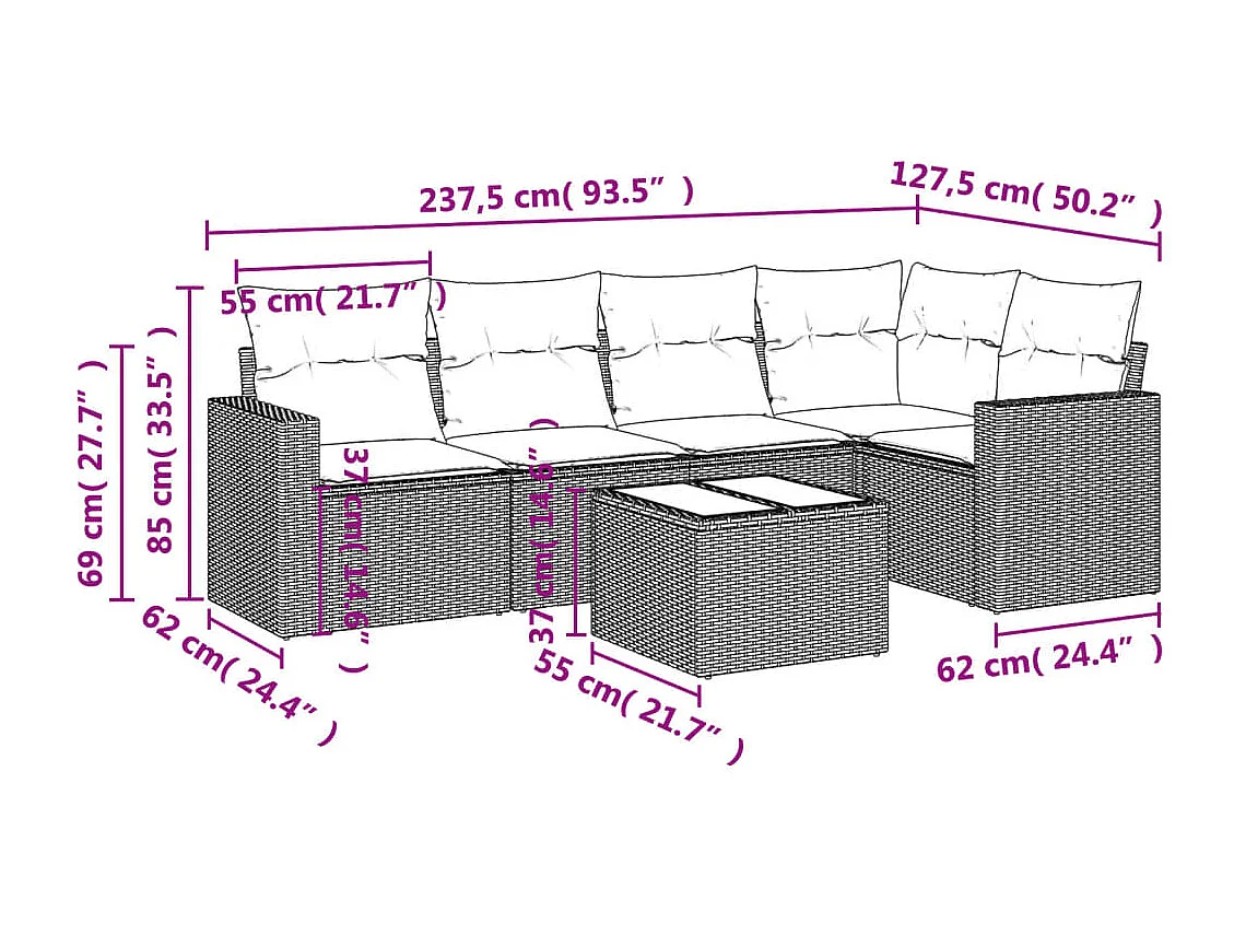 Salon de jardin avec coussins 6 pcs beige résine tressée