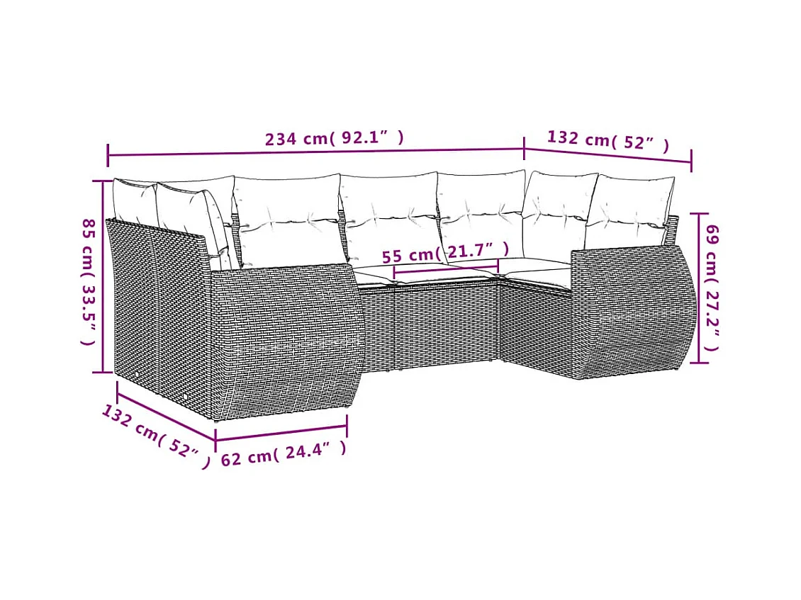 Salon de jardin avec coussins 6 pcs beige résine tressée