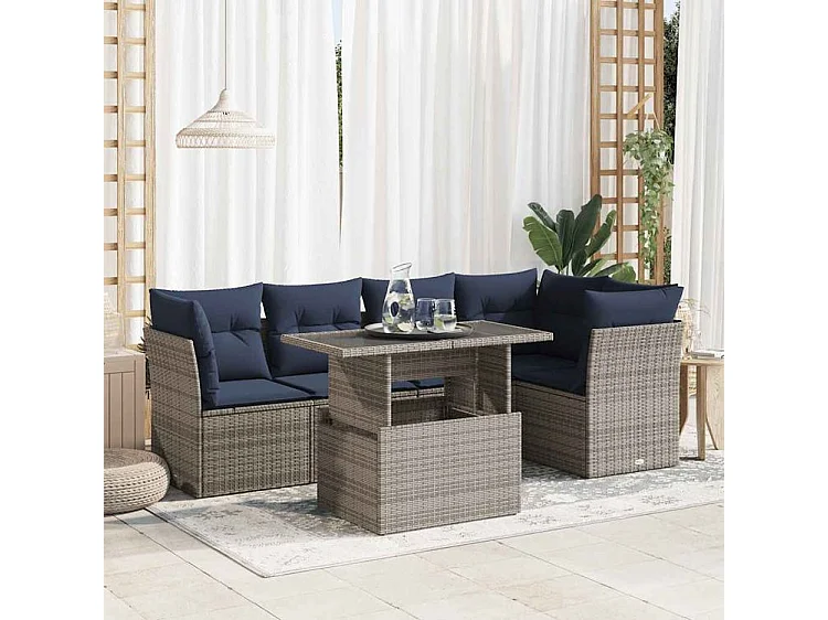 Salon de jardin avec coussins 6 pcs gris résine tressée acacia