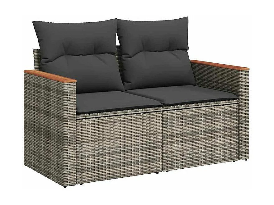 Salon de jardin avec coussins 6 pcs gris résine tressée acacia