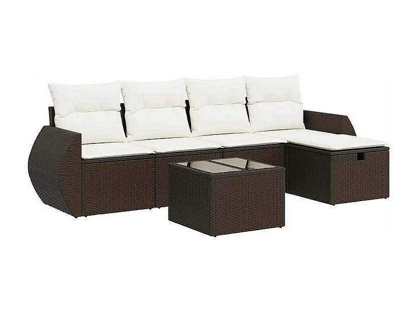 Salon de jardin avec coussins 6 pcs marron résine tressée
