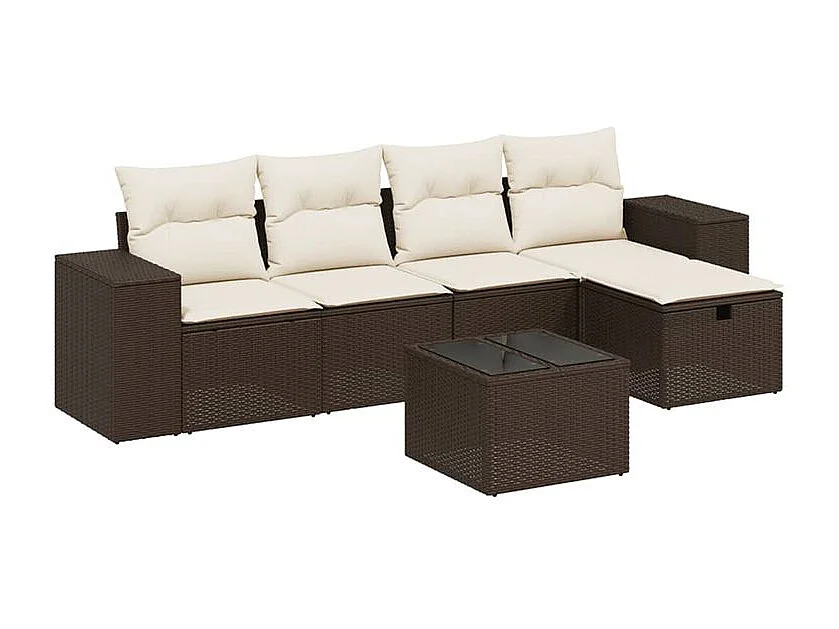 Salon de jardin avec coussins 6 pcs marron résine tressée