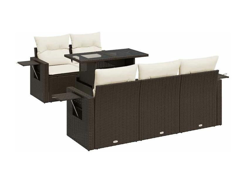 Salon de jardin avec coussins 6 pcs marron résine tressée