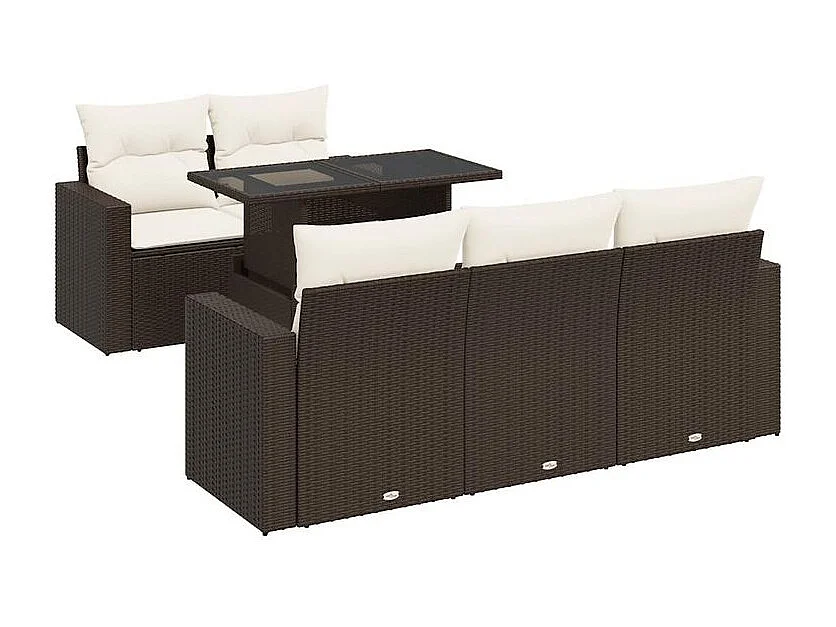 Salon de jardin avec coussins 6 pcs marron résine tressée