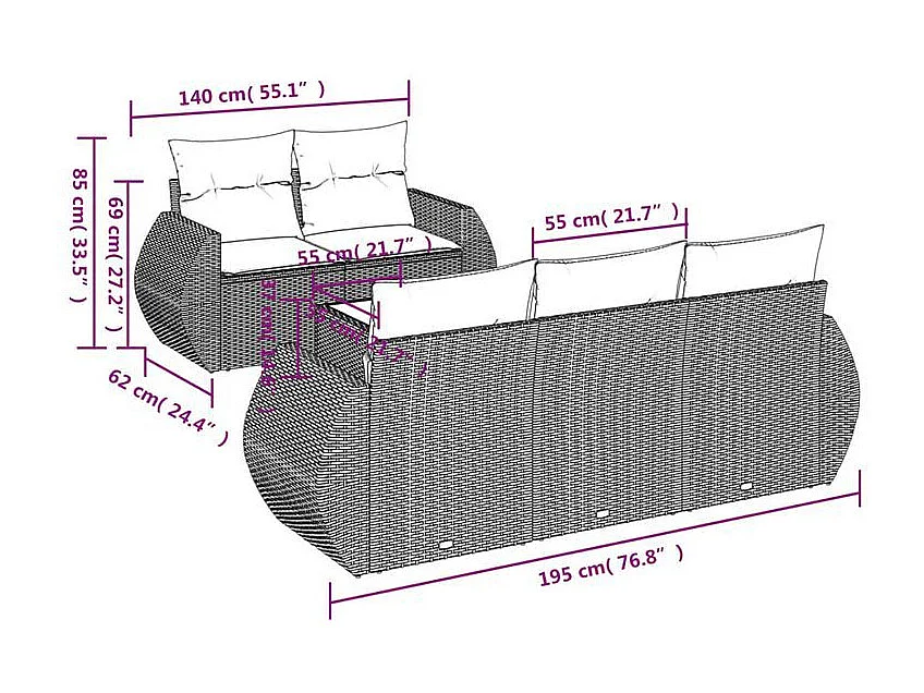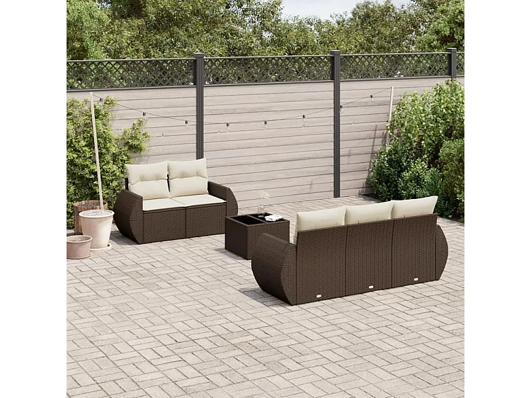 Salon de jardin avec coussins 6 pcs marron résine tressée