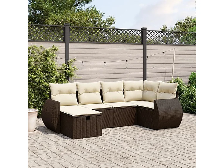 Salon de jardin avec coussins 6 pcs marron résine tressée