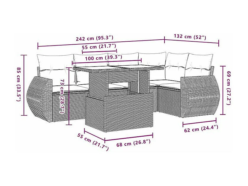 Salon de jardin avec coussins 6 pcs marron résine tressée