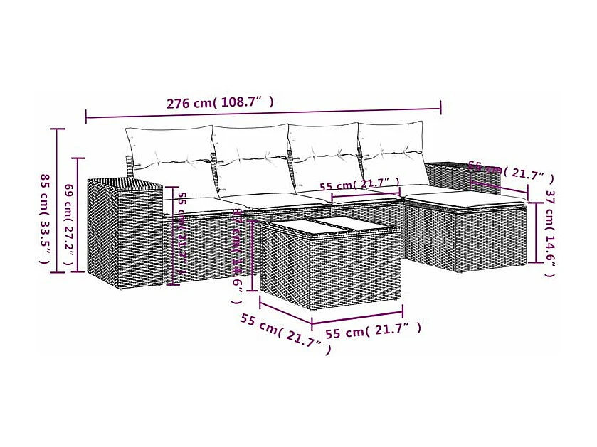 Salon de jardin avec coussins 6 pcs marron résine tressée