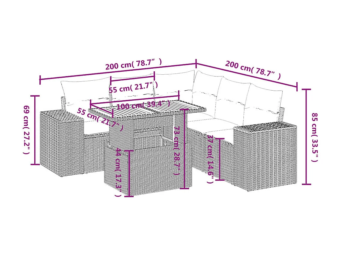 Salon de jardin avec coussins 6 pièces beige résine tressée