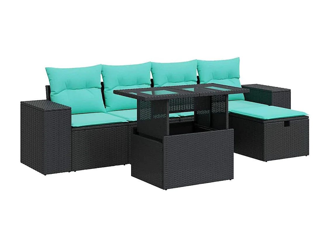 Salon de jardin avec coussins 6 pièces gris résine tressée acacia