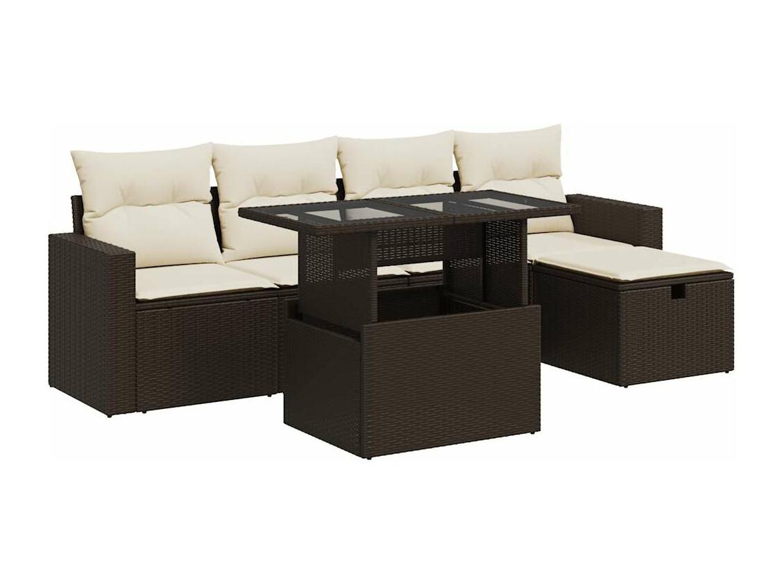 Salon de jardin avec coussins 6 pièces marron résine tressée