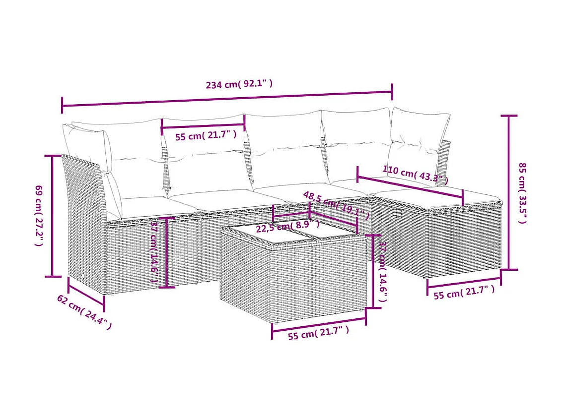 Salon de jardin avec coussins 6pcs mélange beige résine tressée
