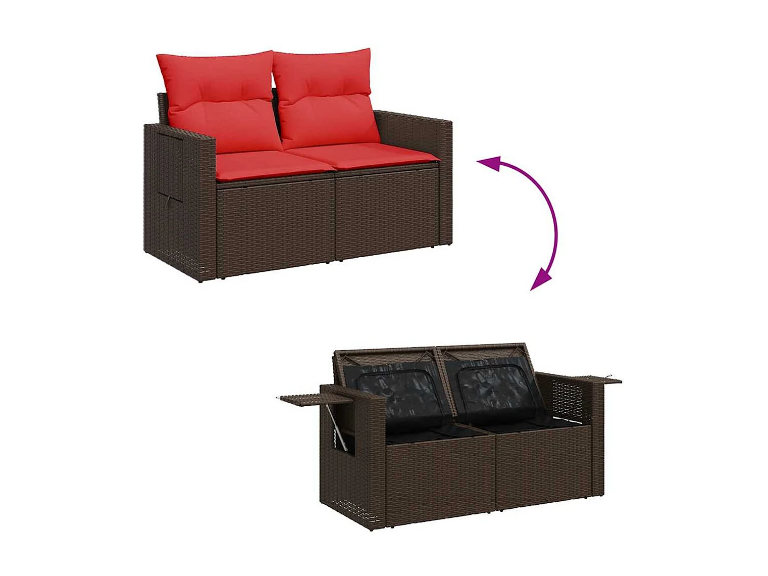 Salon de jardin avec coussins 6pièces marron résine tressée acacia