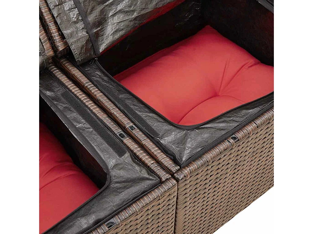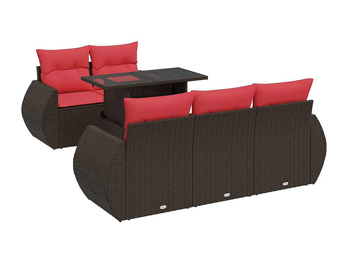 Salon de jardin avec coussins 6pièces marron résine tressée acacia