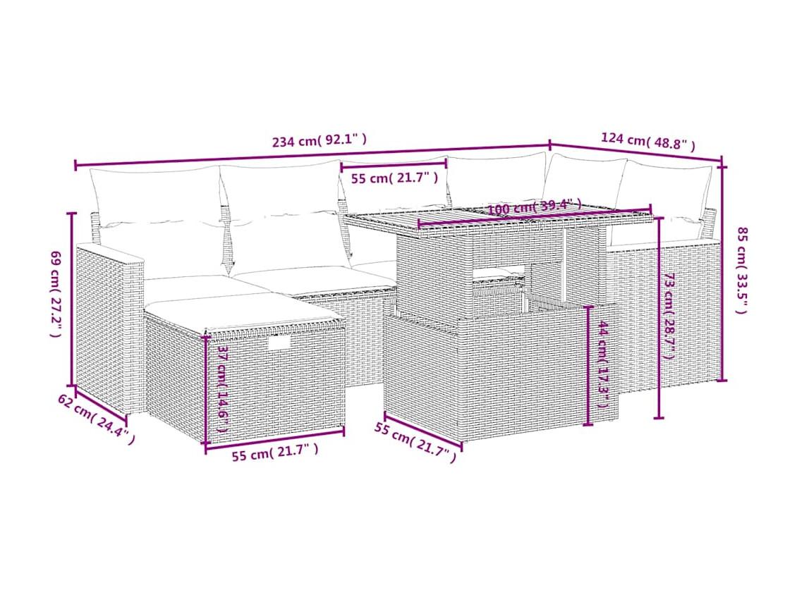 Salon de jardin avec coussins 7 pcs beige résine tressée