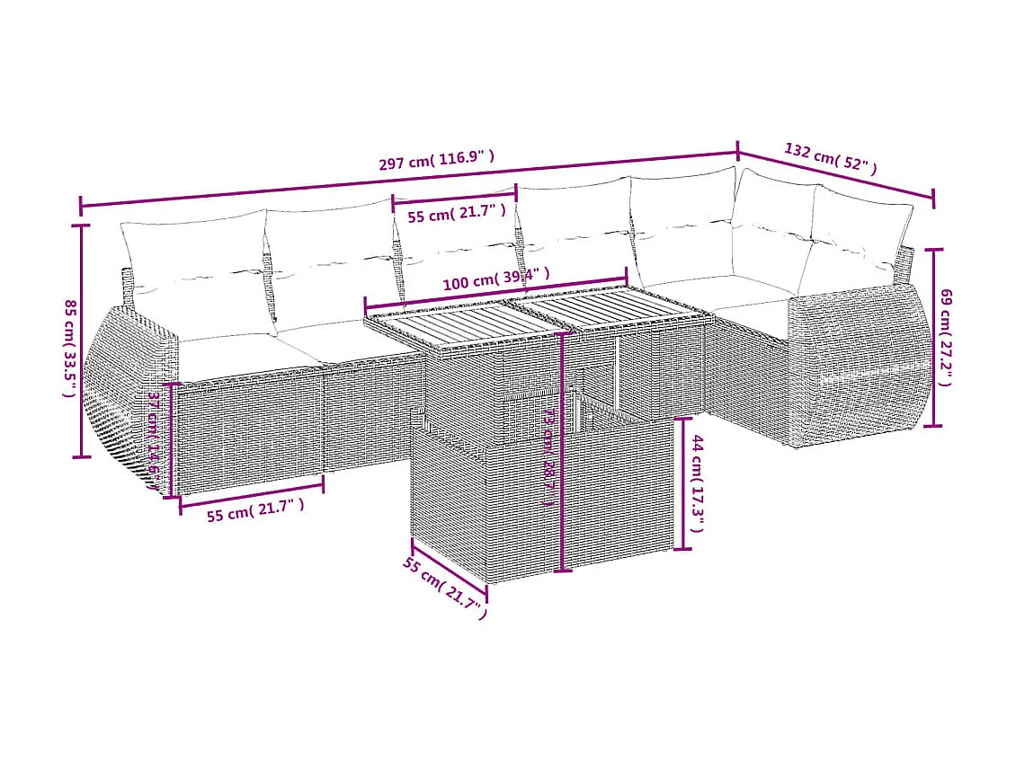 Salon de jardin avec coussins 7 pcs beige résine tressée