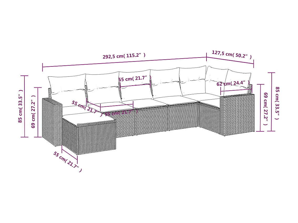 Salon de jardin avec coussins 7 pcs beige résine tressée