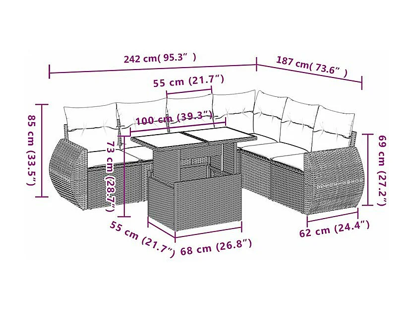 Salon de jardin avec coussins 7 pcs beige résine tressée