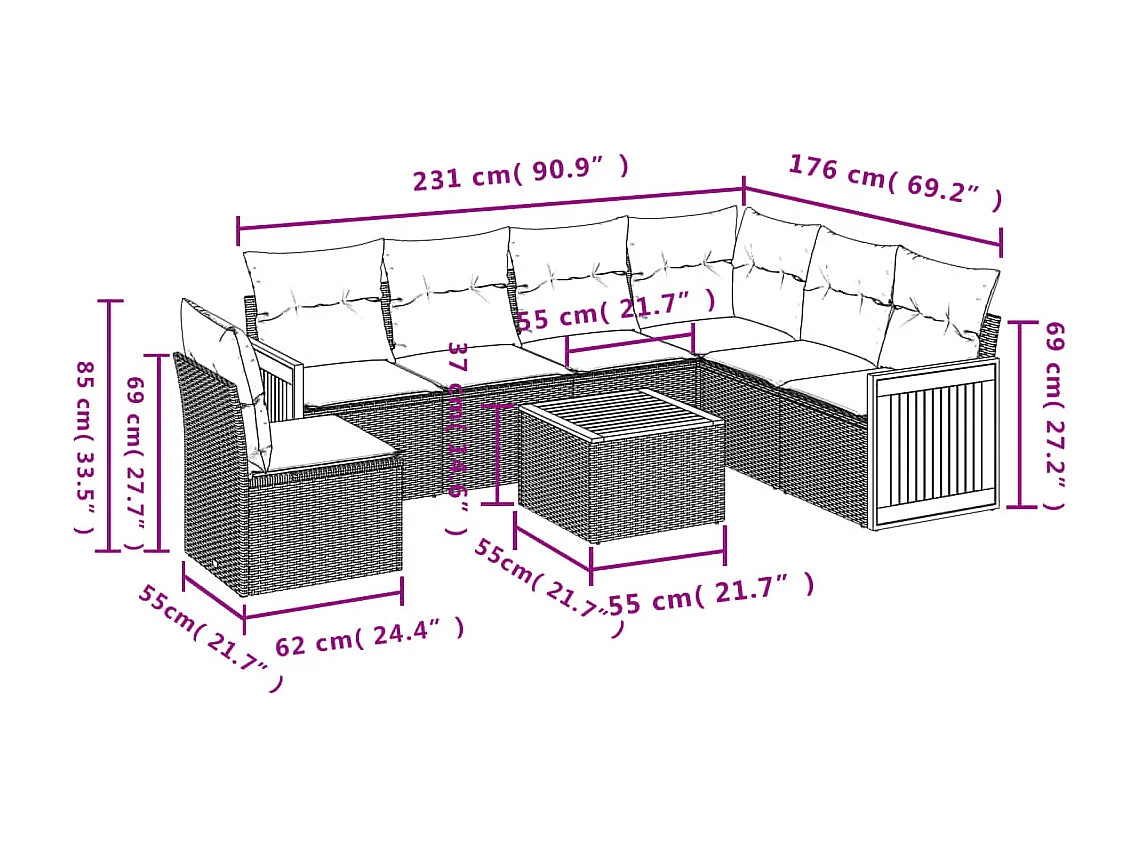 Salon de jardin avec coussins 7 pcs beige résine tressée
