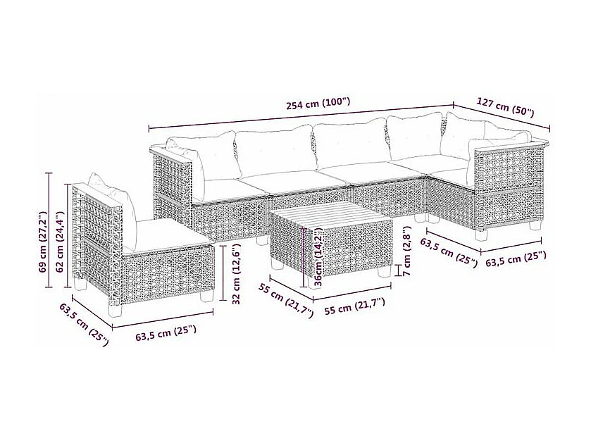 Salon de jardin avec coussins 7 pcs beige résine tressée