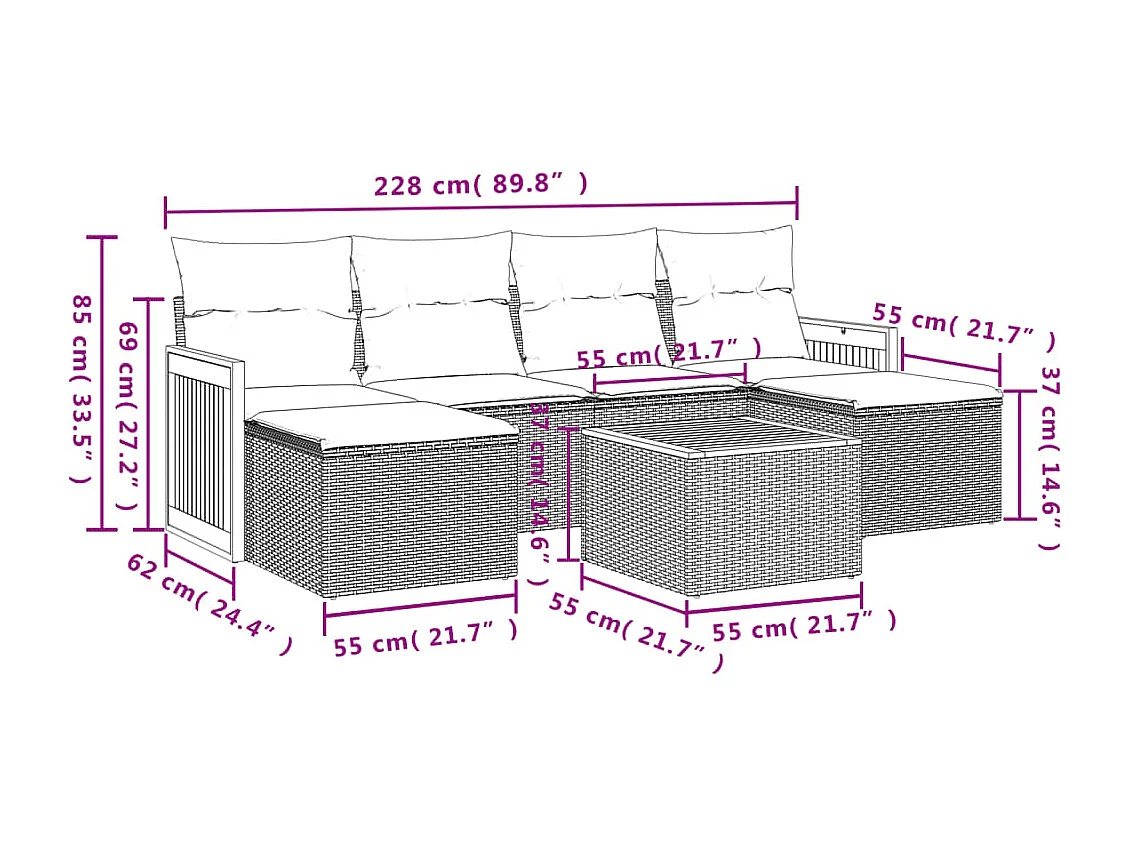 Salon de jardin avec coussins 7 pcs beige résine tressée